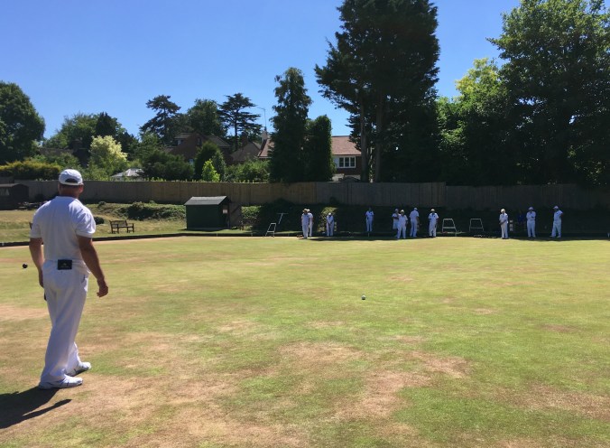 A shortage of Pippbrook players resulted in a match of three triples, played in scorching heat with only a little shade available.