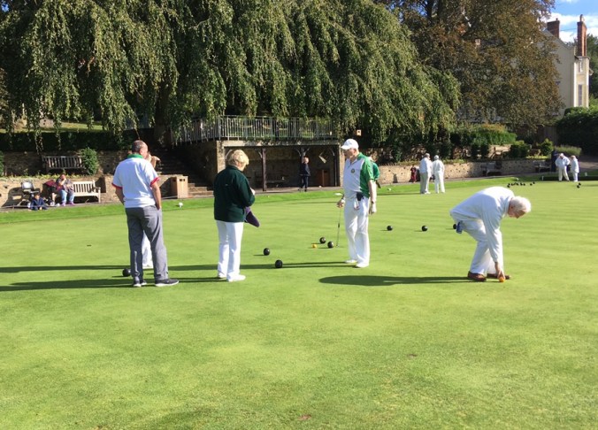 With Castle Green loaning us two bowlers, we were able to play three rinks of triples, although on one rink we were to play two against three, playing with a total of eight bowls for each team.