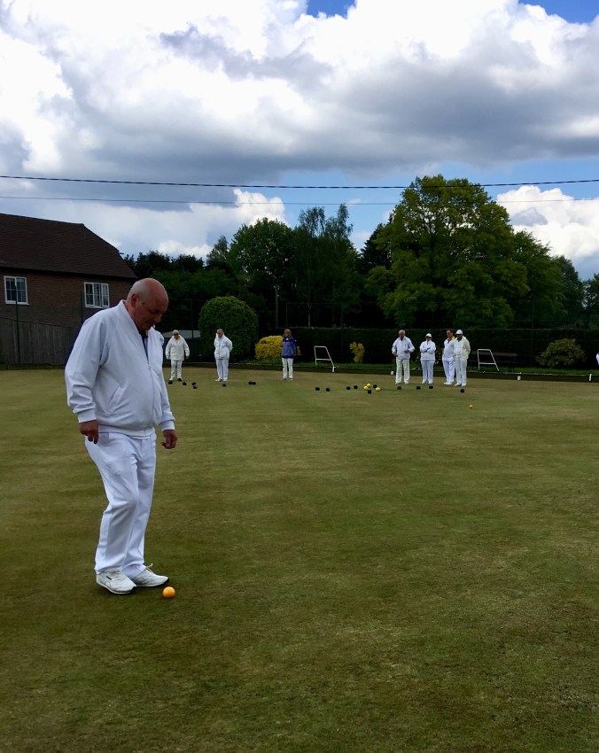 On Sunday, 26th May, Merrow hosted Knaphill for an inaugural friendly of four triples. Unlike Saturday, the sky was overcast and we had a heavy shower just before the match started. However, despite the lowering clouds, the match was played in dry but cool conditions.