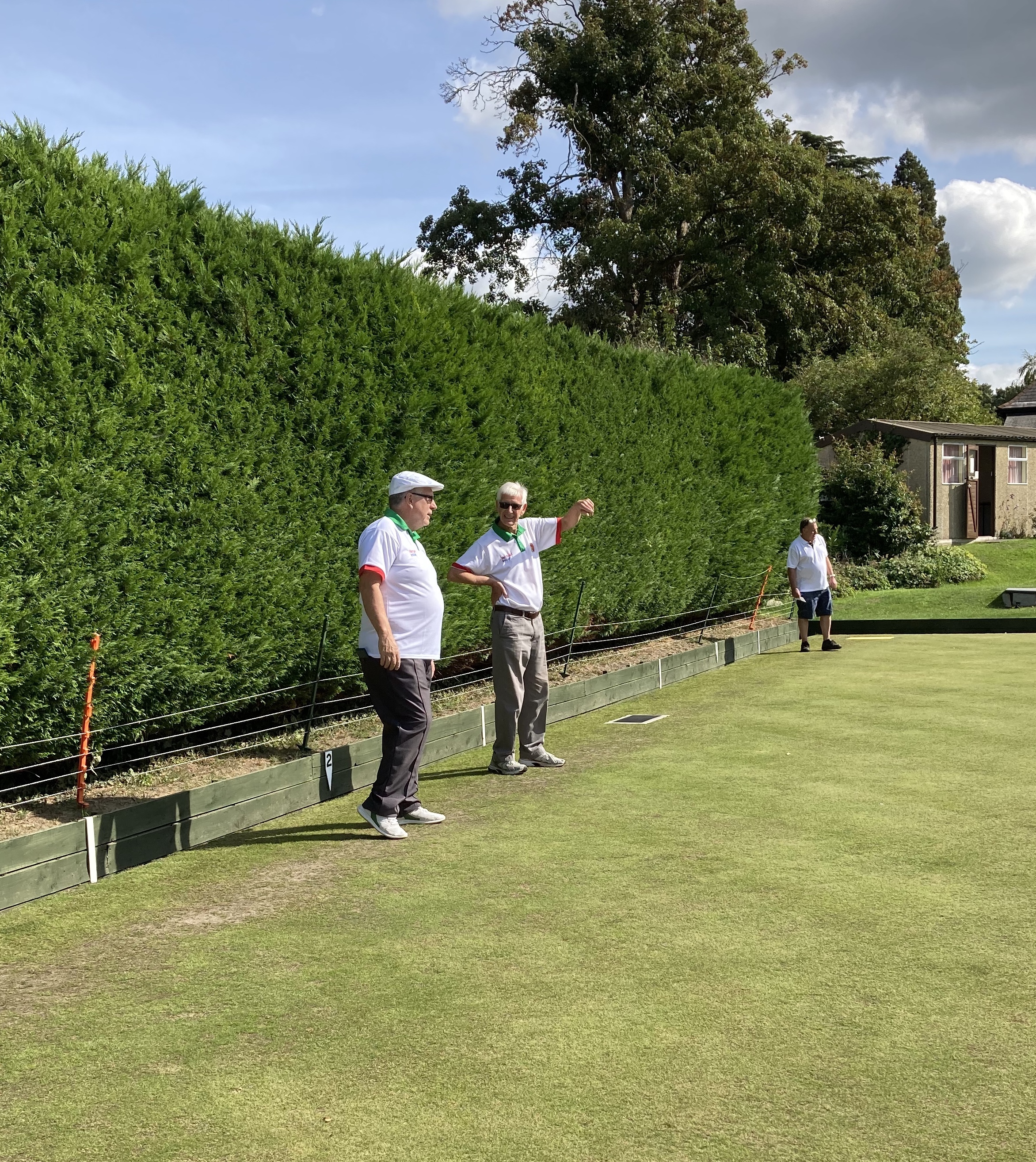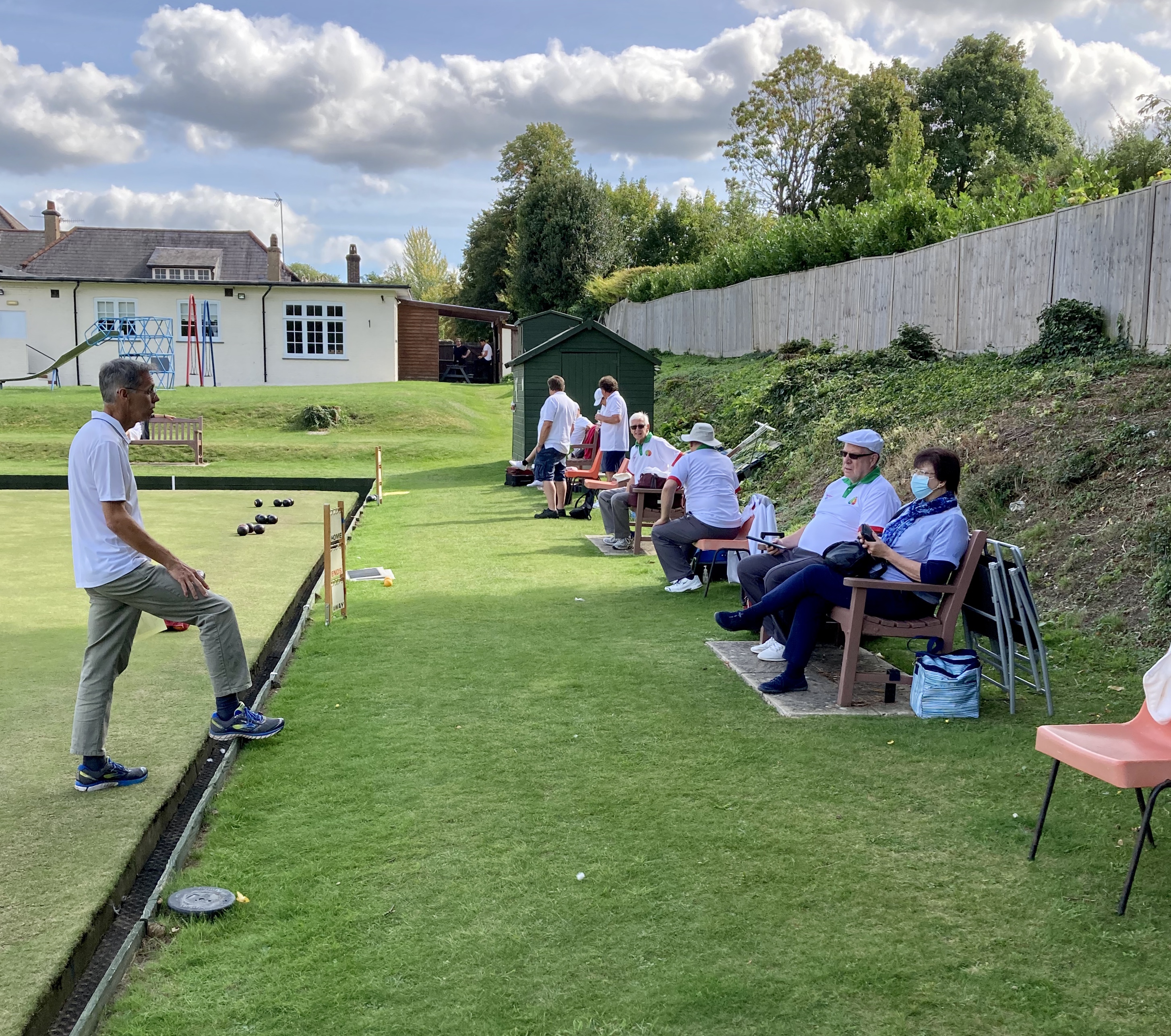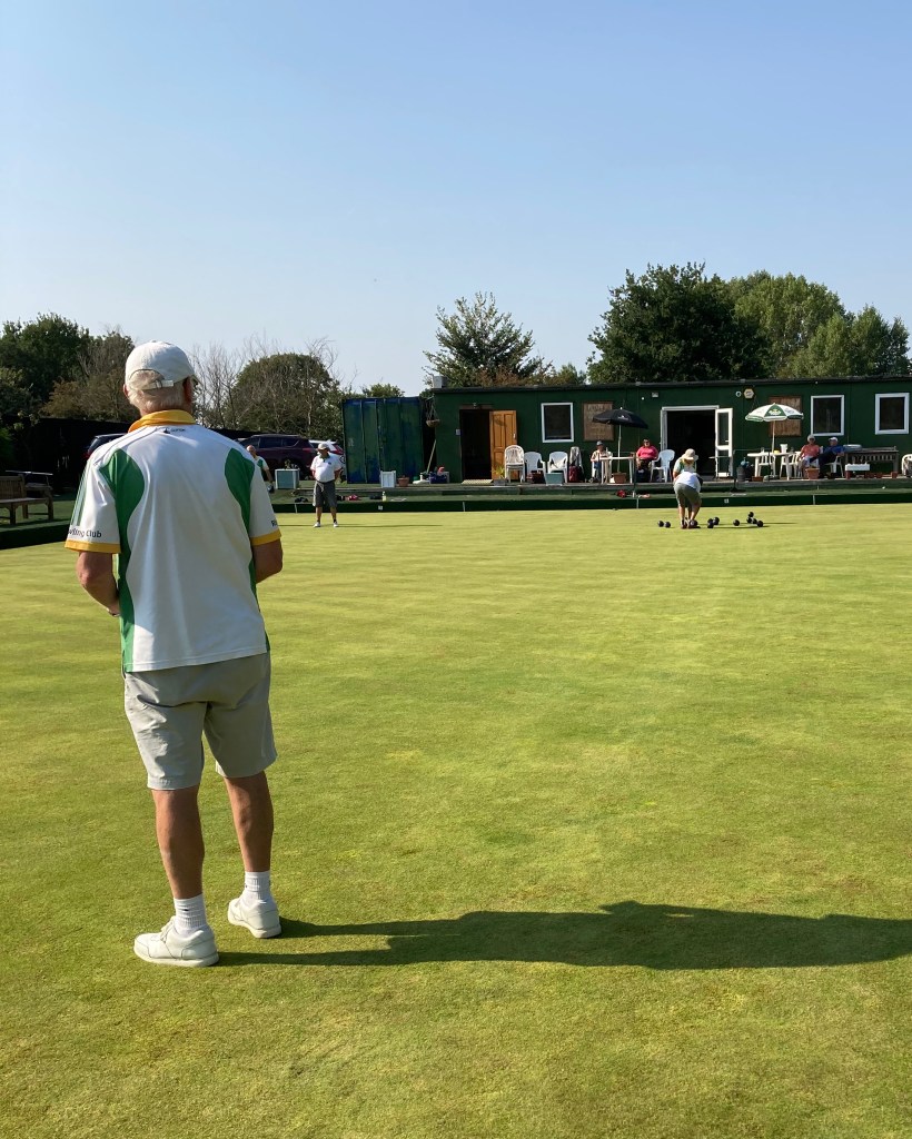 The teams had been organised by our coach, David E, who had given us a green to be proud of. President David M, unable to play, watched from the sidelines.
