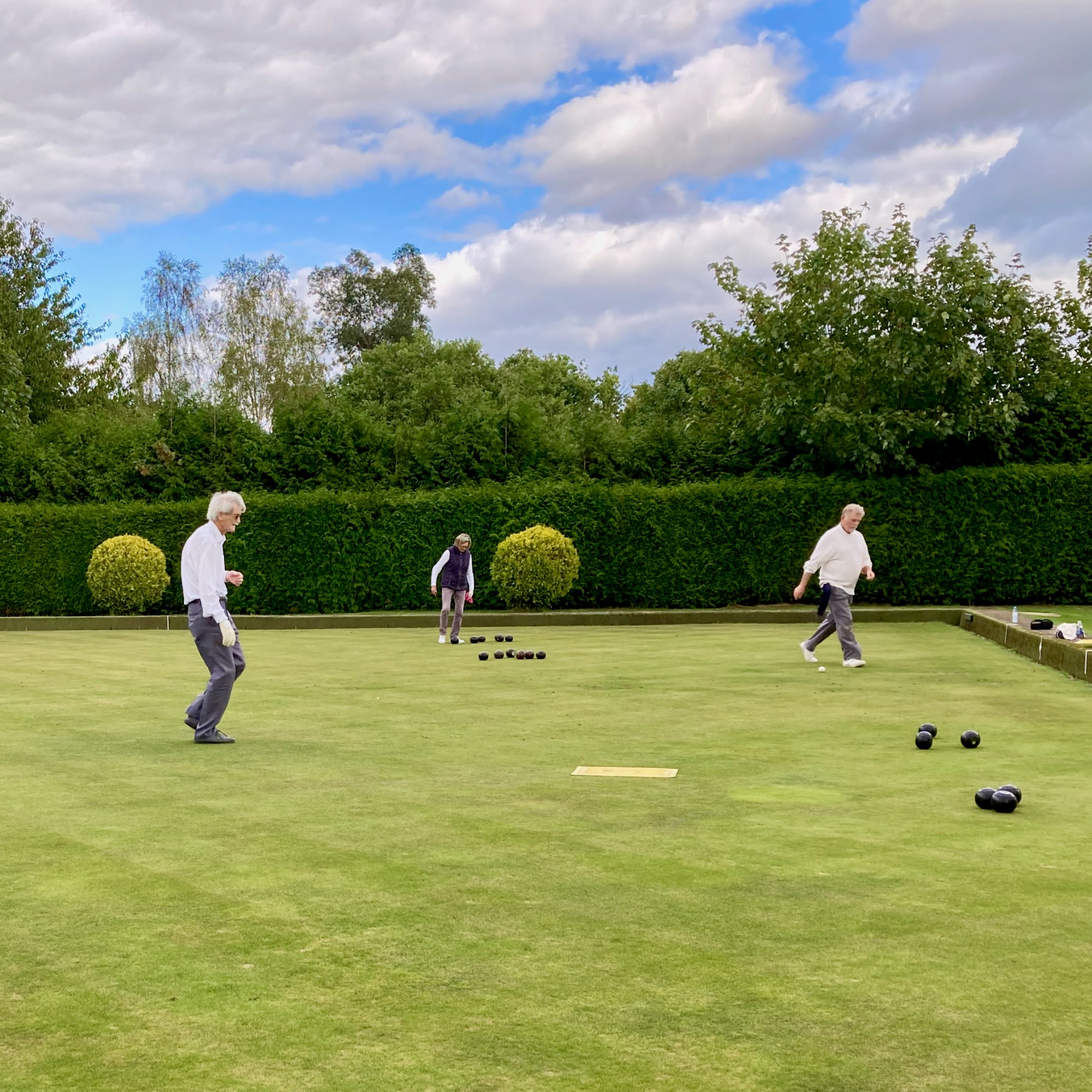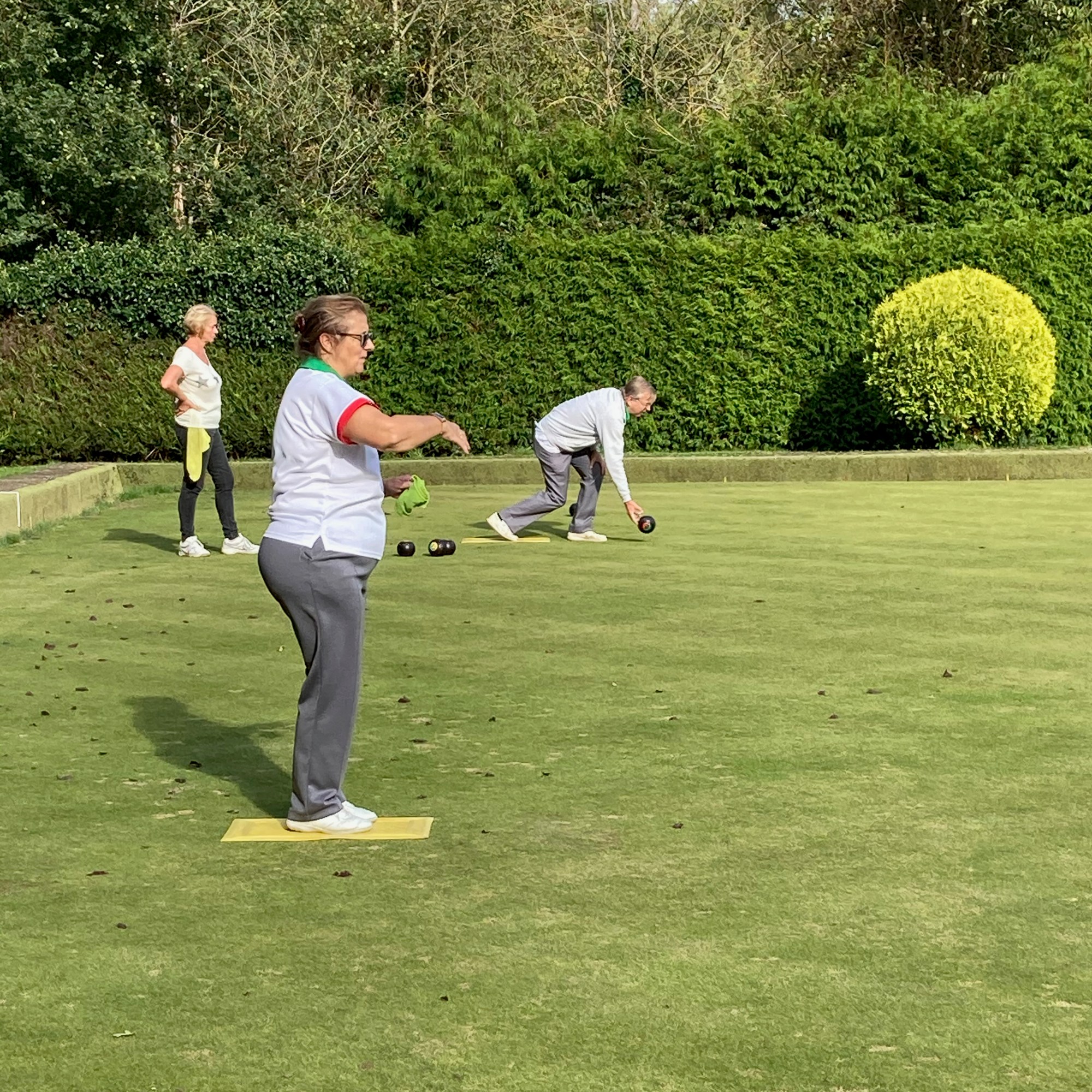 We were fortunate to have a warm and sunny afternoon to play a match of three pairs. Our green is in splendid condition and playing really well, thanks to David and Debbie’s efforts, so an enjoyable afternoon was in prospect.