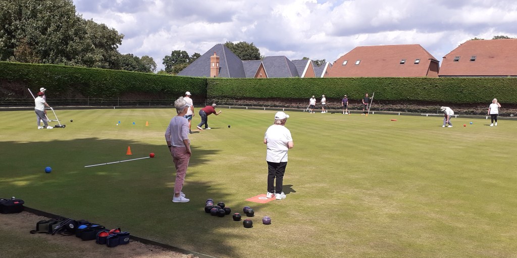 The Monday afternoon skills have proved useful for improving our confidence in match play – sometimes we can draw round short bowls or wrest out and remain to hold shot! The goal to get within mat length for 2 points means we are focussing on accuracy.