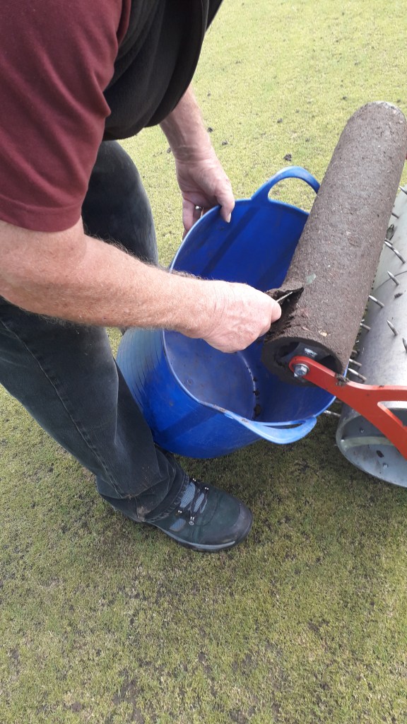 It’s been raining a lot and the worms have been having a field day. Mike B helped roll and scrape the (two barrowloads) of mud off the green before we attempted to mow.