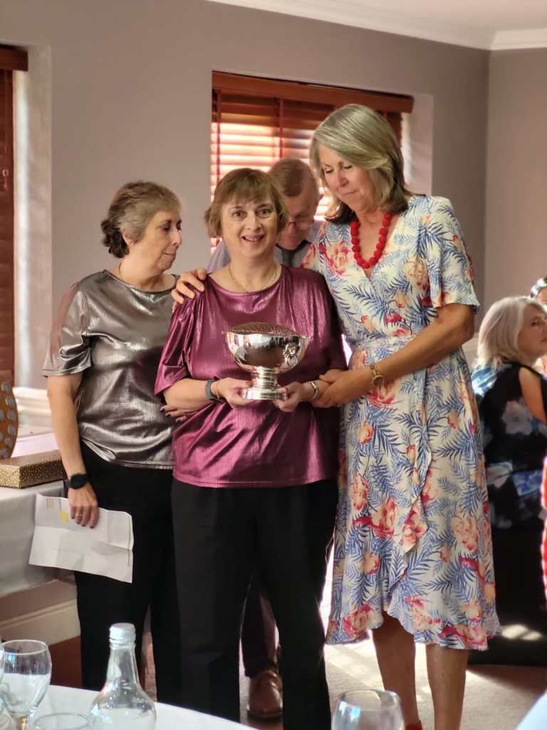 Fifty members and guests enjoyed a delicious lunch at Sutton Green Golf Course at our annual presentation lunch. Trophies and awards were given out to club competition winners and runners up and Knaphill Triple winners. We had an opportunity to celebrate success and thank all those who help the smooth running of the club, with a special mention to this year’s club person, Mike B, and Derek. A raffle by Andy and Ken rounded off the afternoon.